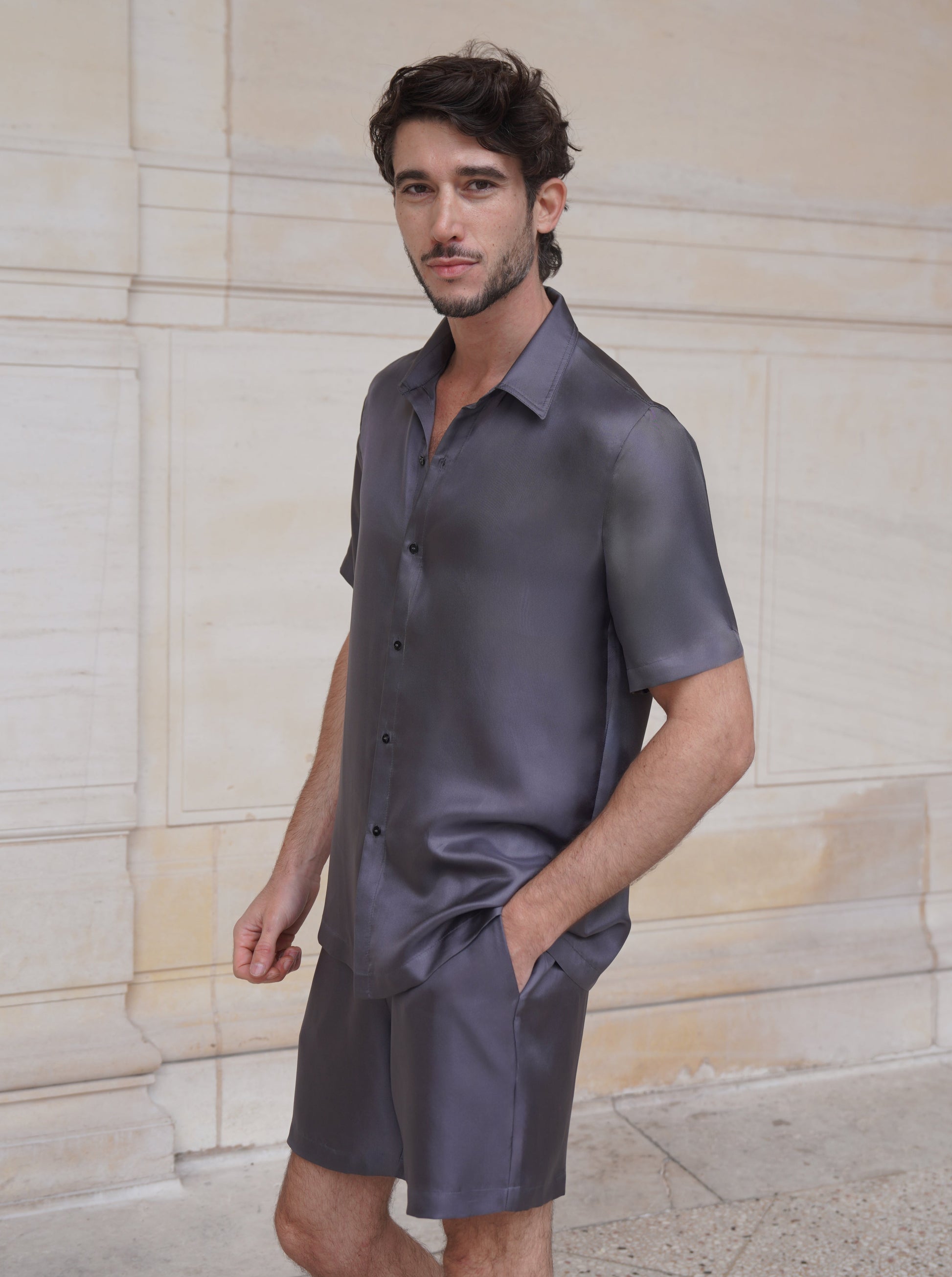 HOGG BERMUDA IN ASH GRAY SILK TWILL