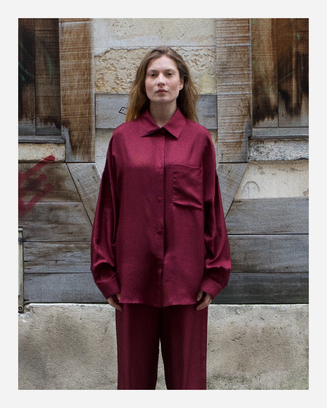 THE MURRAY SHIRT OFFER VERSATILITY WITH ITS FRONT POCKES AND OVERSIZED CUT. MADE OF FEATHERWEIGHT SILK TWILL, SHOWCASING A STUNNING SUBTLE SHINE.